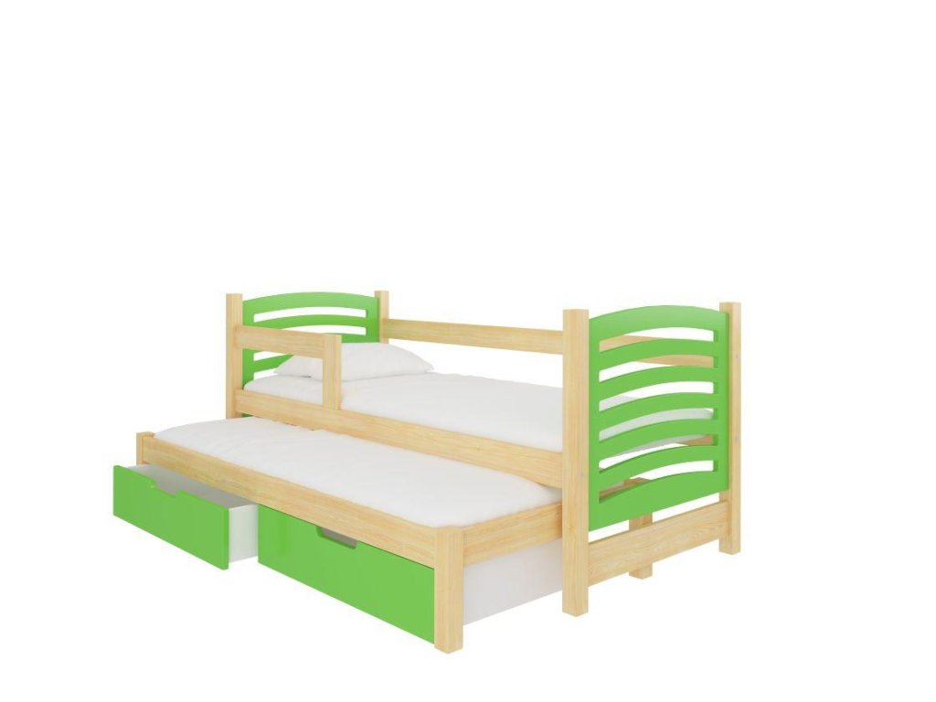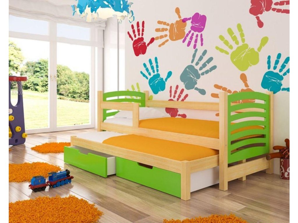 Dětská postel dvoulůžko s matracemi AVILA - Přírodní / Zelená - 75x180cm