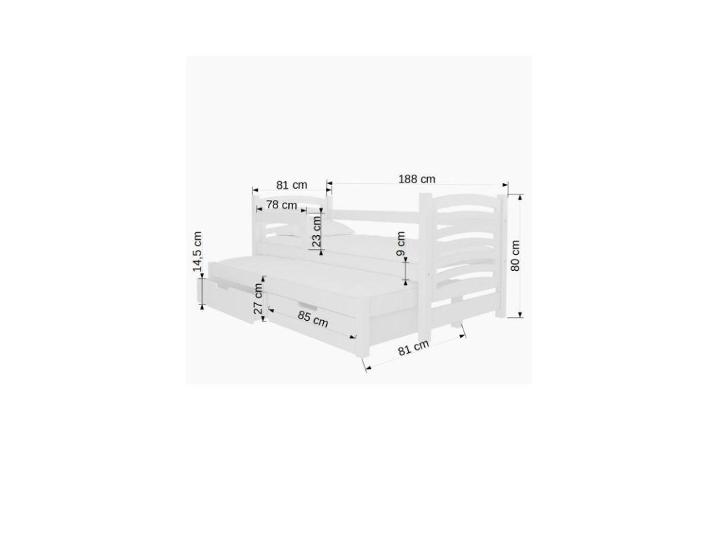 Postel Avila má rozměry 180 x 70 cm a je tak vhodná pro ubytování dvou dětí, například sourozenců sdílejících pokoj. Konstrukce je vyrobena z kvalitního a odolného materiálu, díky čemuž je celá postel stabilní a bezpečná.