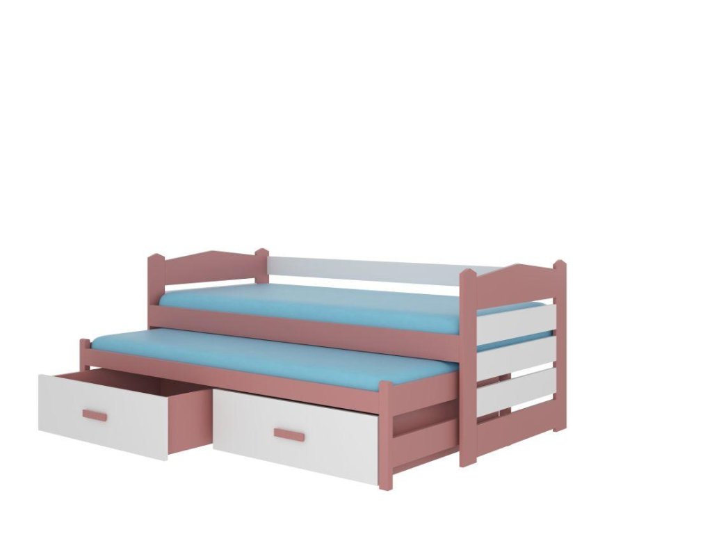 Dvoulůžko s matracemi TIARRO - Bílá / Růžová - 80x180cm