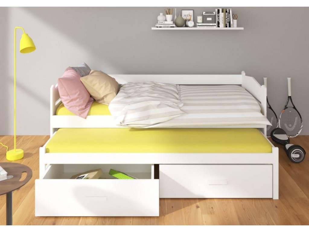 Postel Tiarro je ideální pro ubytování hostů, kteří zrovna přijeli na návštěvu. Nemusíte tak obětovat vlastní pohodlí. Stejně tak ocení sdílení pokoje sourozenci, kteří získají vlastní úložný prostor. Matrace jsou vyrobeny z kvalitní studené pěny. Mají výšku 8 cm a poskytují potřebnou oporu páteři.