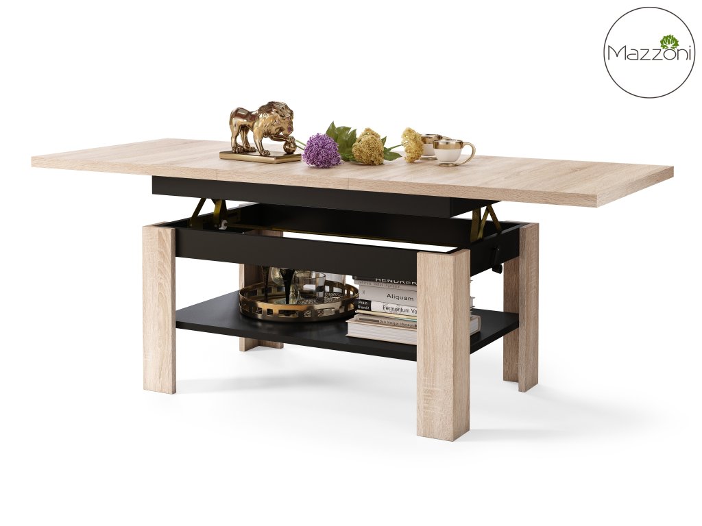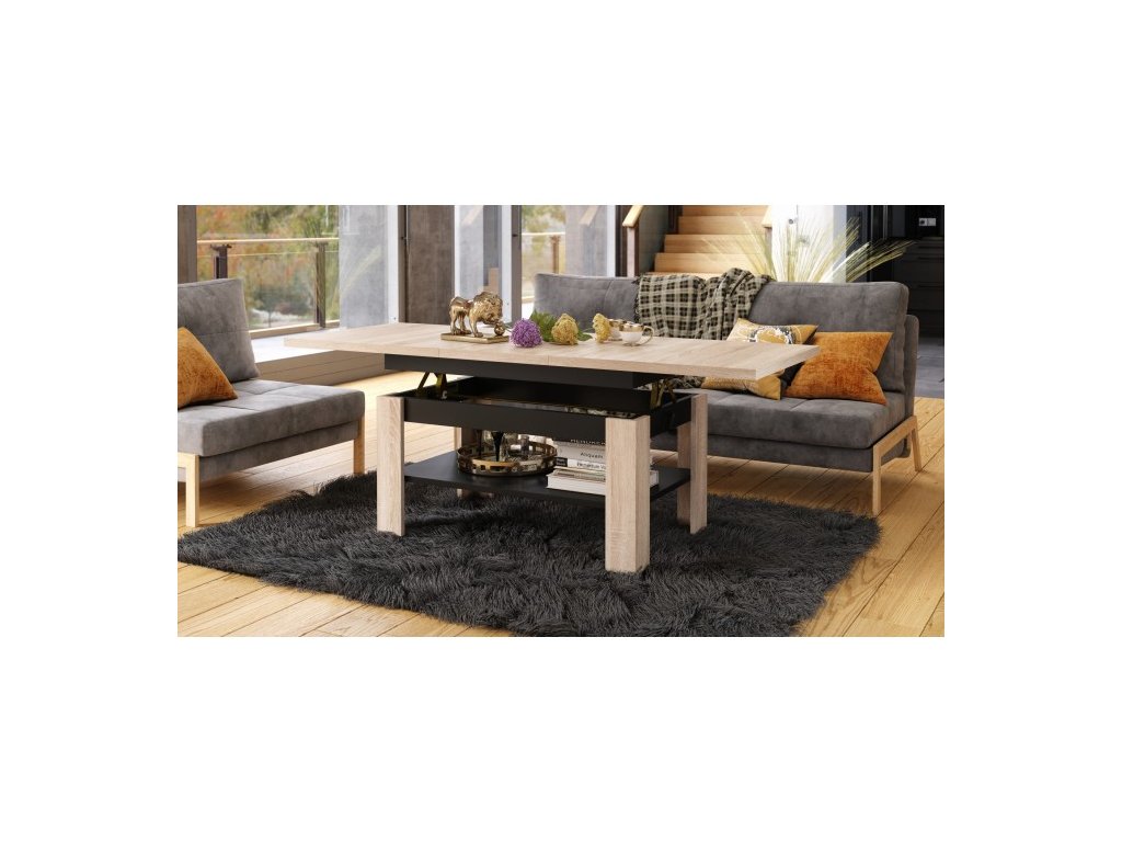Konferenční stolek RIO s rozkládací a zvedací deskou - 130 cm - Dub Sonoma - Černá Mat