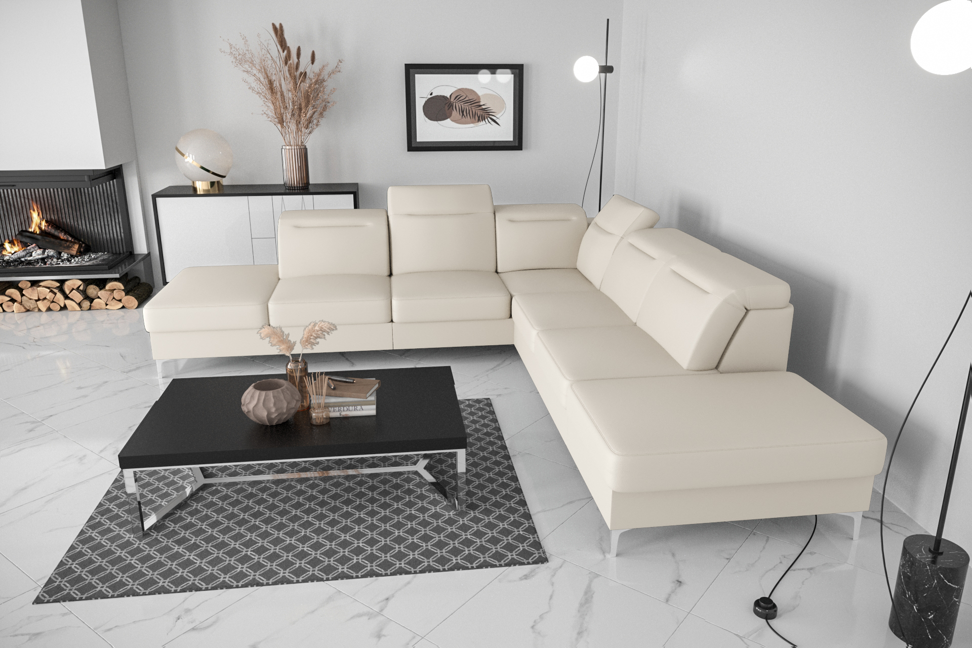 Luxusní rohová sedačka OSLO MAX z pravé kůže nabízí funkci spaní s úložným prostorem a polohovatelnými opěrkami hlavy. Konstrukce z masivního dřeva s vlnitými pružinami zajišťuje pohodlí a dlouhou životnost. Délka 295 cm.