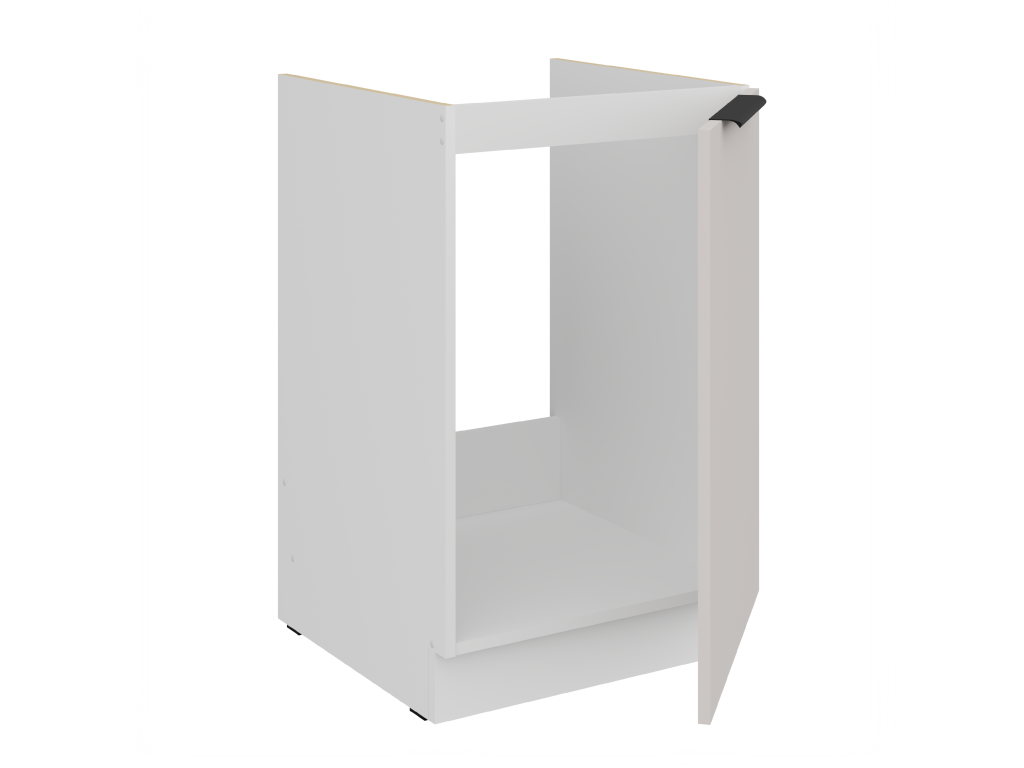 Korpus i dvířka jsou vyrobeny z laminované desky o tloušťce 16 mm, která zajišťuje odolnost vůči běžnému opotřebení a zároveň snadnou údržbu. Praktické hranové úchytky z černého hliníku podtrhují moderní charakter a zajišťují komfortní manipulaci.