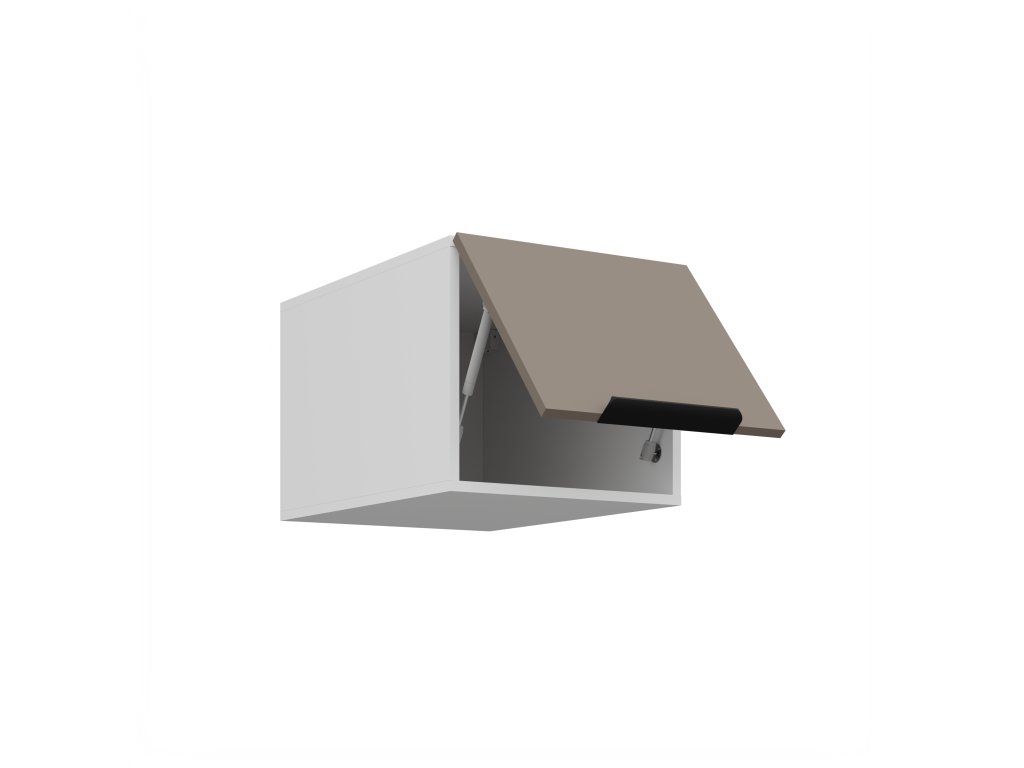 Design dotváří moderní úchyt UA-HEXA v černém hliníku, který vytváří stylový detail a podtrhuje elegantní charakter sestavy. Díky systému tichého uzavírání se dvířka zavírají plynule a bez hluku, což zvyšuje každodenní komfort používání.