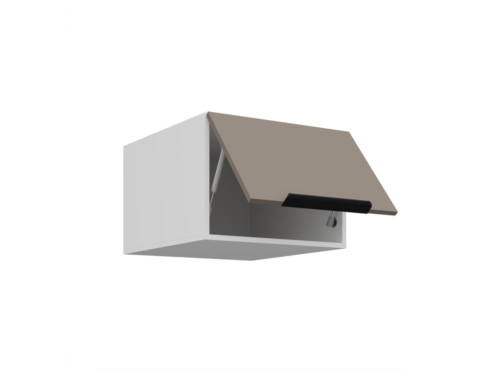 Design dotváří moderní úchyt UA-HEXA v černém hliníku, který vytváří stylový detail a podtrhuje elegantní charakter sestavy. Díky systému tichého uzavírání se dvířka zavírají plynule a bez hluku, což zvyšuje každodenní komfort používání.