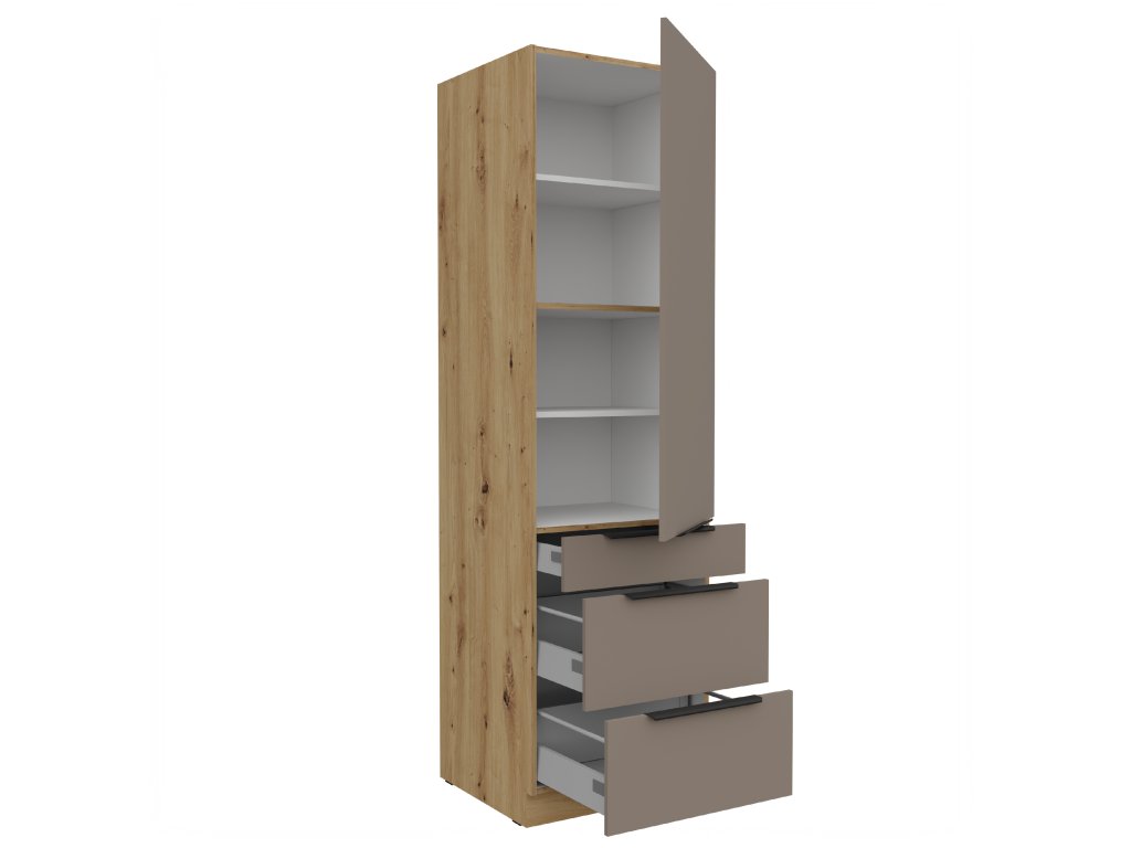 Kuchyňská linka ARIA - Sandgrau AFM / Dub Artisan - 60 potravinová skříň (60 DKS-210 3S1F)