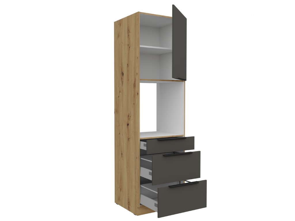 Kuchyňská linka ARIA - Grafit / Dub Artisan - 60 na troubu + šuplíky (60 DPS-210 3S 1F)