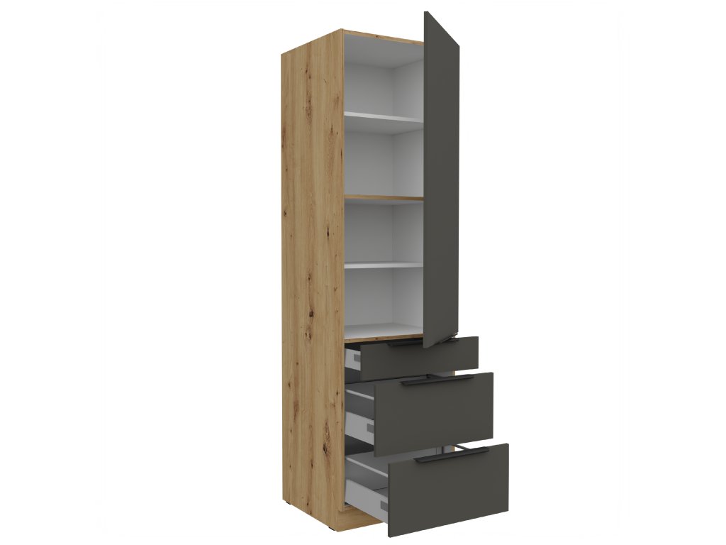 Kuchyňská linka ARIA - Grafit / Dub Artisan - 60 potravinová skříň (60 DKS-210 3S1F)