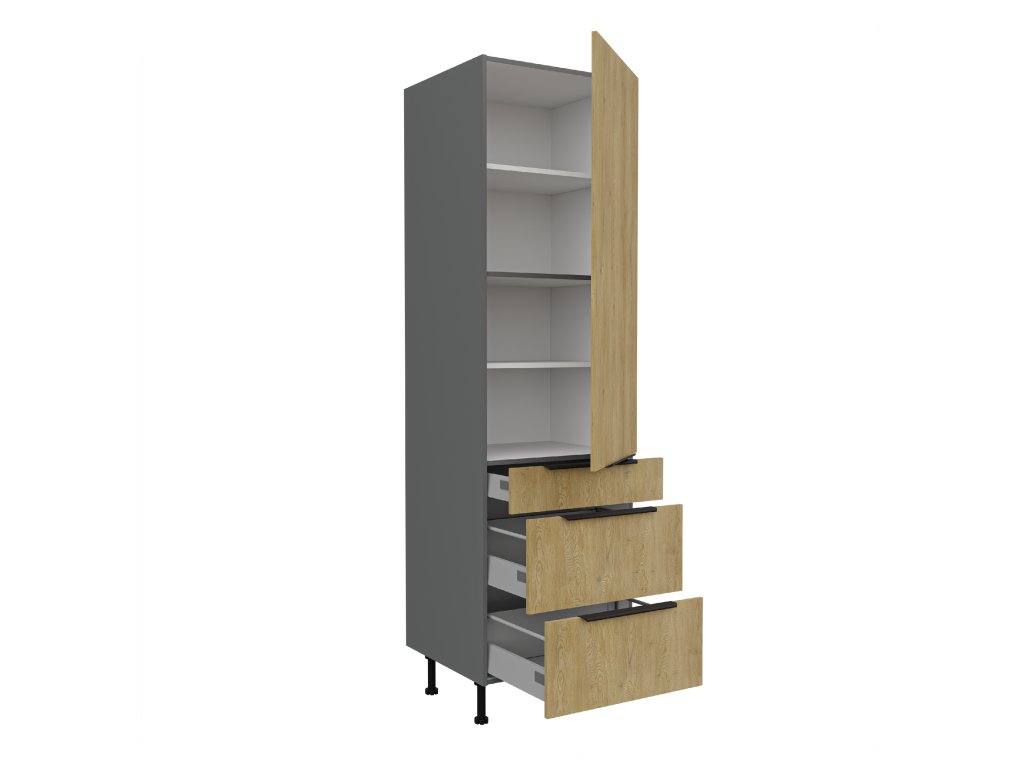 Kuchyňská linka CREMONA - Antracit / Dub Cremona - 60 potravinová skříň + šuplíky (60 DKS-210 3S 1F)
