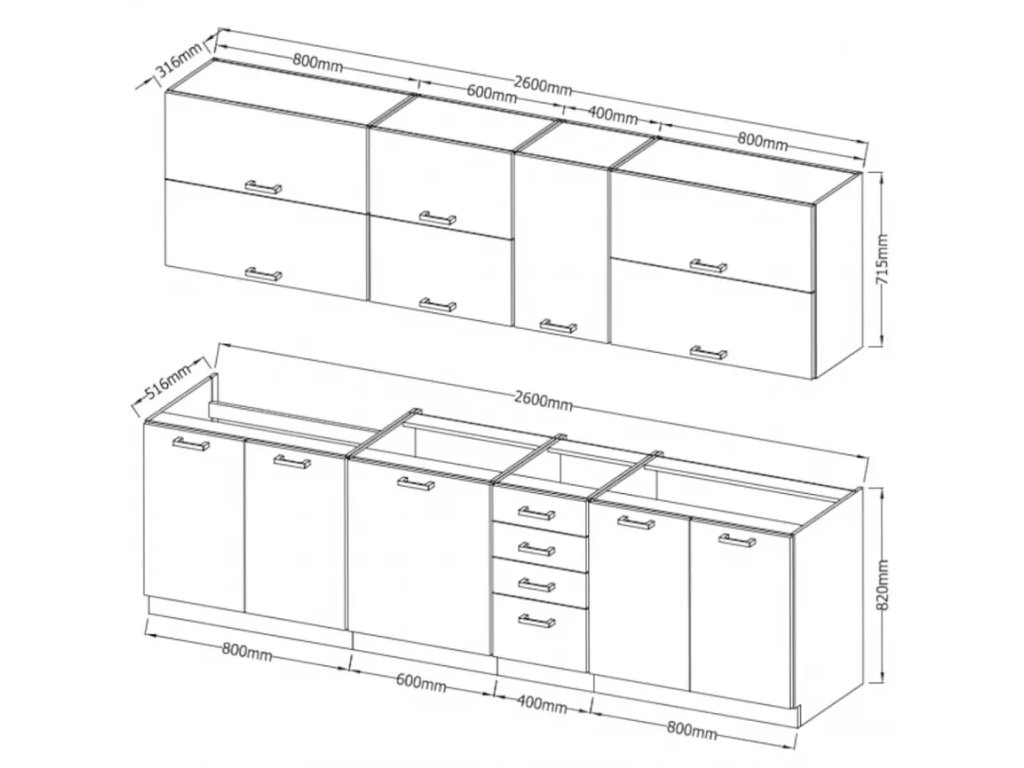 Grey kuchyňská linka je vyrobena z vysoce kvalitních materiálů, které jsou odolné proti opotřebení a snadno se udržují. Čela linky jsou vyrobena z MDF desky v bílém lesku a chráněná ABS dýhou, což dodává tomuto produktu atraktivní a moderní vzhled. Korpus je vyroben z laminované desky v šedé barvě, což dodává celkovému designu sofistikovanost.