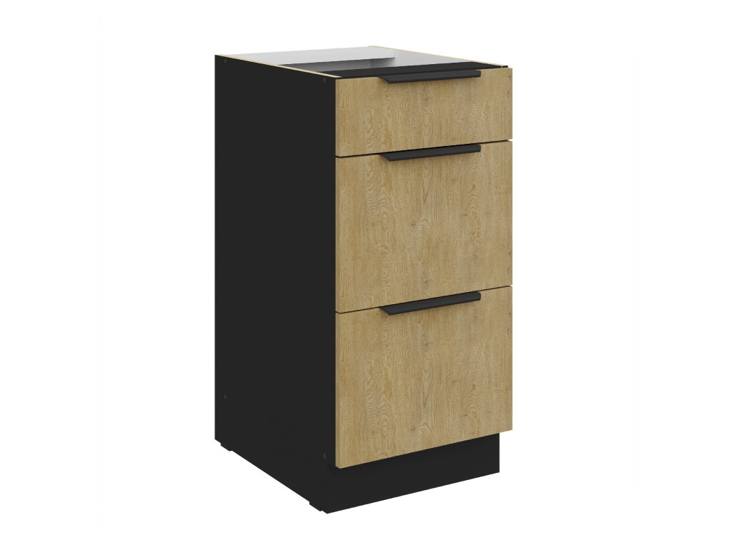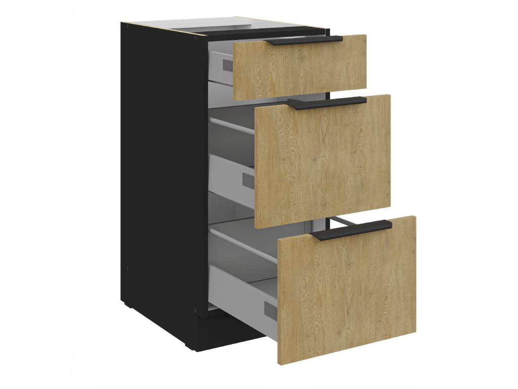 Kuchyňská linka CREMONA - Černá mat / Dub Cremona - 40 šuplíky (40 D 3S)