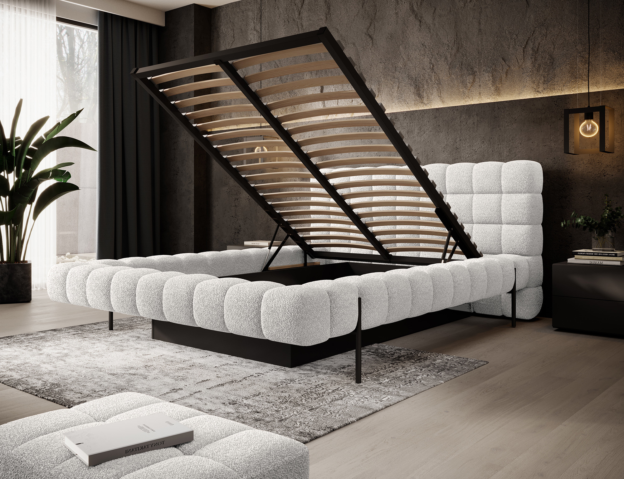 Jedním z nejpraktičtějších prvků postele Magentta je integrovaný úložný prostor, který poskytuje ideální řešení pro uskladnění ložního prádla a dalších textilií. Tento prvek je zvláště cenný v menších bytech, kde každý centimetr úložného prostoru hraje důležitou roli. Postel o rozměrech 140x200 cm nabízí velkorysý prostor pro skladování, přičemž zachovává snadný přístup k uloženým věcem. Je důležité zmínit, že postel se dodává bez matrace, což umožňuje výběr ideálního typu matrace podle individuálních preferencí a potřeb uživatele.
