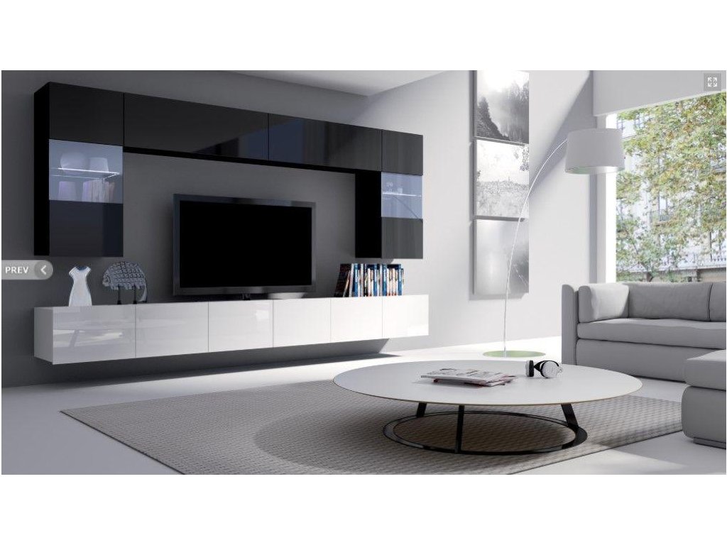 obývací stěna CALABRINI I - černá / bílá lesk