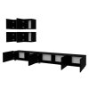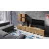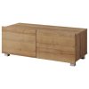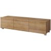 Televizní stolek o šířce 150 cm poskytuje dostatek místa pro umístění televize a dalších audiovizuálních zařízení. Skříňky a zásuvky nabízejí úložný prostor pro kabely, dálkové ovladače a příslušenství. Tento model stolku je ideální do větších obývacích pokojů.