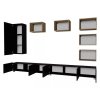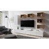 Základem obývací stěny CALABRINI XXXI je dvojice minimalistických televizních stolků o rozměrech 150 x 32 x 43 cm. Jsou vyrobeny z 16mm laminované dřevotřískové desky a skrývají v sobě úložné prostory pro umístění audio video techniky a příslušenství. Stolky jsou navrženy pro montáž na zeď, ale lze je instalovat i jako samostatně stojící. Jejich čistý a nadčasový vzhled dotváří celkový moderní ráz sestavy.