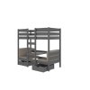 Patrová postel Bart nabízí dvě samostatná spací místa v jednom kompaktním nábytku. Horní lůžko poskytuje plnohodnotný komfort pro spaní jednoho dítěte. Spodní část sestává ze dvou sedacích míst s opěradlem a díky výsuvné desce může sloužit i jako praktický psací stůl či jídelní stolek. Dvě boční zásuvky ukrývají dostatek prostoru pro uložení povlečení a dalšího ložního prádla.