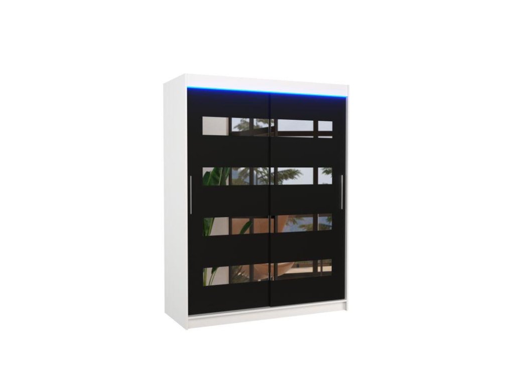 Posuvná skříň se zrcadlem a LED osvětlením BALTIC - Bílá / Černá - šířka 150cm