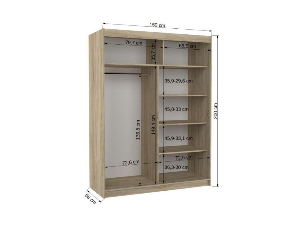 Posuvná skříň se zrcadlem BALTIC - Sonoma - šířka 150cm Kód: 5905036401768