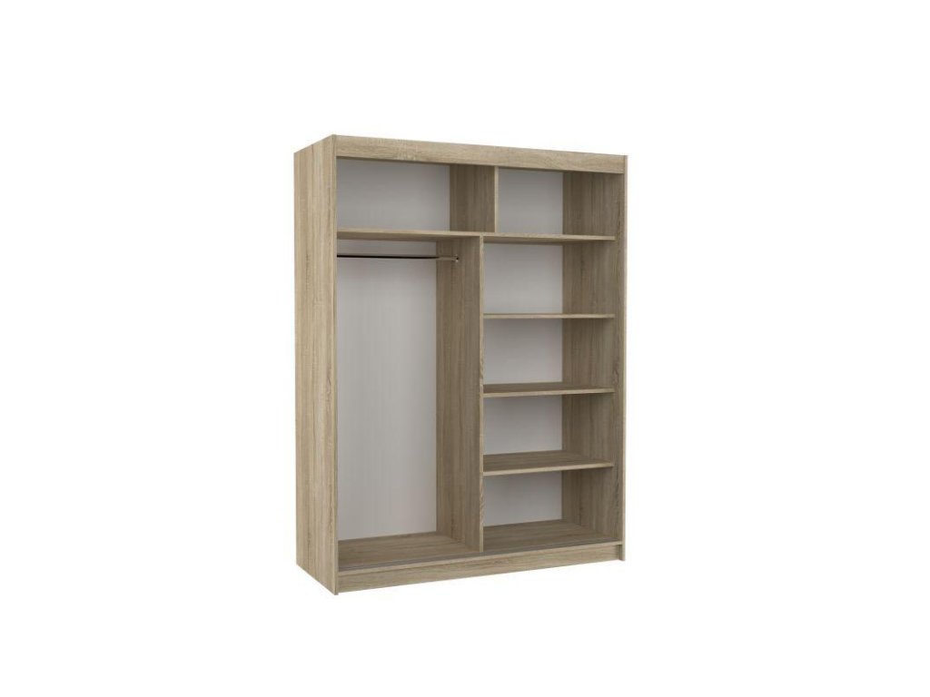 Posuvná skříň Baltic je vyrobena z laminovaných dřevotřískových desek, takže je stabilní a odolná. Díky posuvnému mechanismu s kovovými kolečky se skříň snadno otevírá a zavírá. Uvnitř najdete police, tyče a háčky na oděvy, takže máte dostatek místa pro uspořádání vašeho šatníku. Celková šířka skříně je 120 cm, takže se hodí i do menších prostor. Výška 195 cm a hloubka 62 cm poskytují dostatečný úložný objem. Zrcadla na přední straně opticky zvětšují prostor.