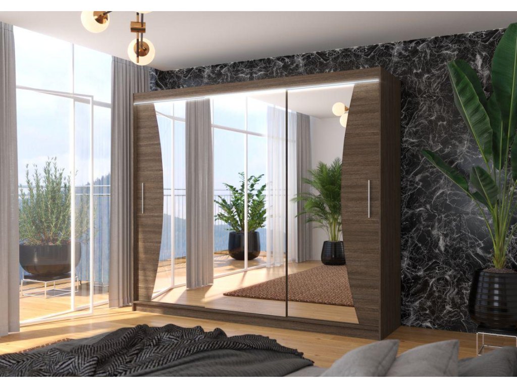 Posuvná skříň se zrcadlem a LED osvětlením DIEGO
