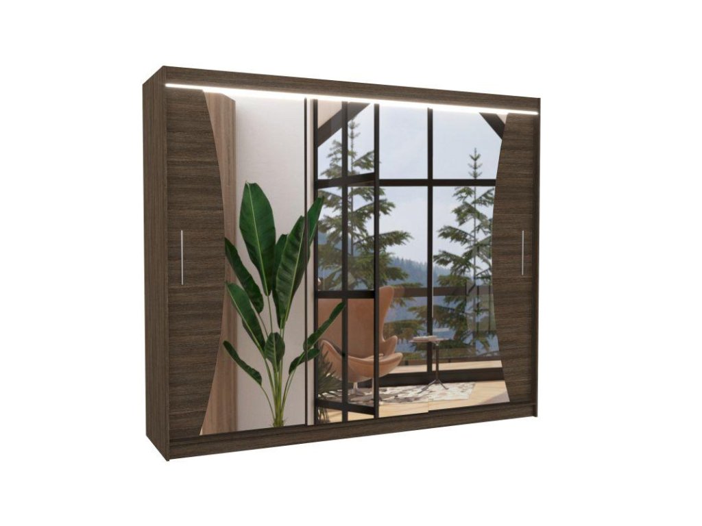 Posuvná skříň se zrcadlem a LED osvětlením DIEGO - Choco - šířka 250cm