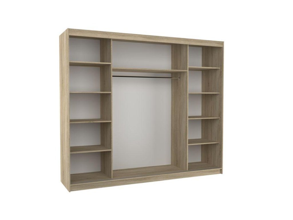 Díky posuvnému mechanismu se při otevírání dveří skříně nemusíte bát nedostatku místa. Křídla dveří jednoduše zasunete podél skříně, aniž byste museli vyčlenit další prostor pro jejich otevření. Toto chytré a praktické řešení oceníte především v malých místnostech, jako jsou ložnice, dětské pokoje, úzké chodby nebo komory. Skříň Diego tak představuje ideální volbu pro ty, kteří potřebují využít každý centimetr svého obytného prostoru.