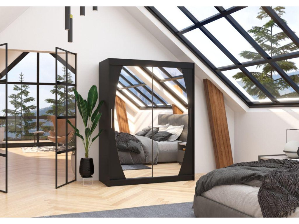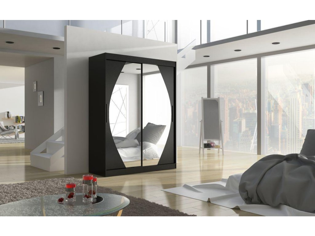 Posuvná skříň se zrcadlem ALEN - Černá - šířka 150cm