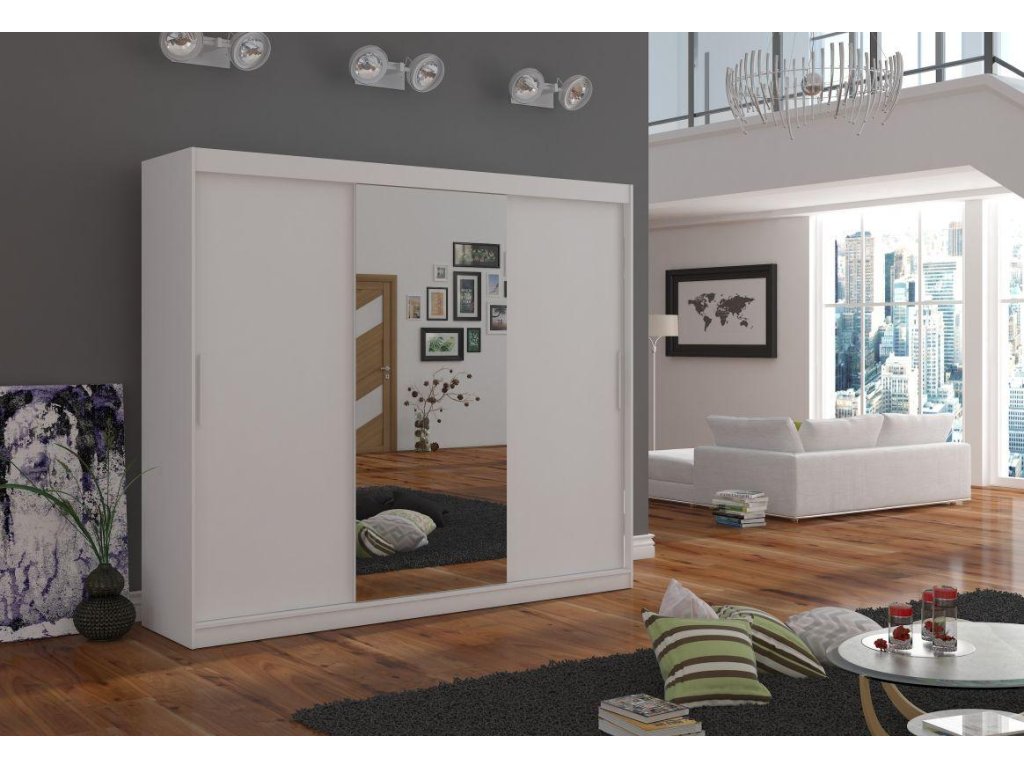 Posuvná skříň se zrcadlem DENIS - Bílá - šířka 250cm