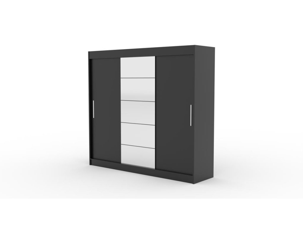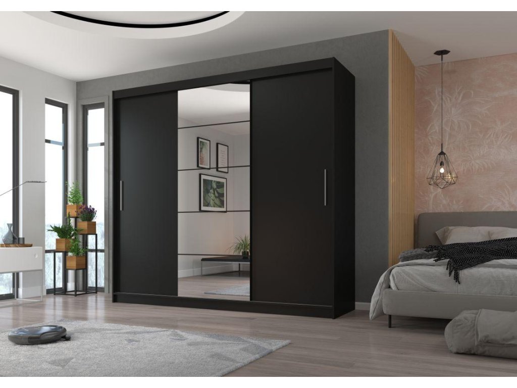 Posuvná skříň se zrcadlem ERWIN - Černá - šířka 235cm