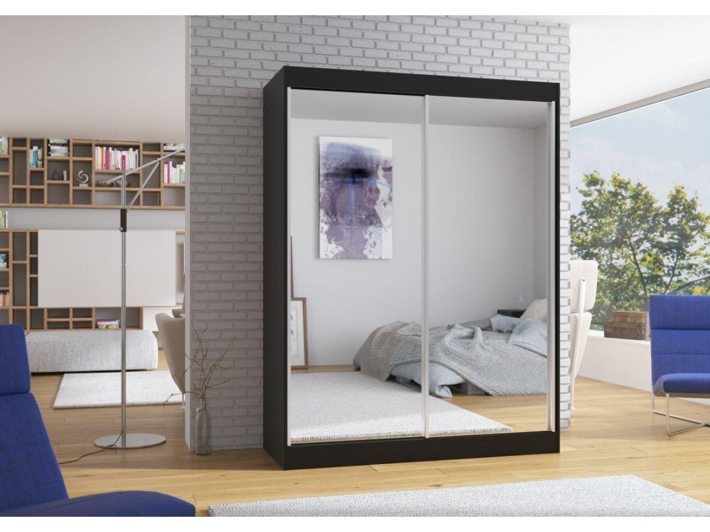 Posuvná skříň se zrcadlem FLOREST - Černá - šířka 150cm