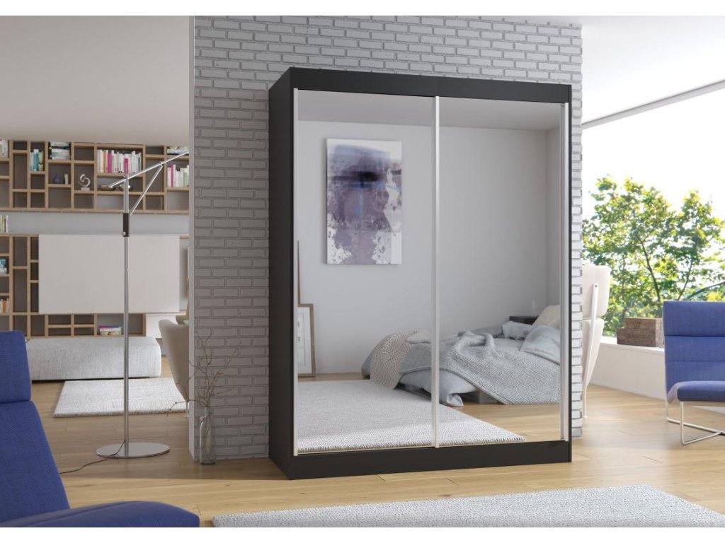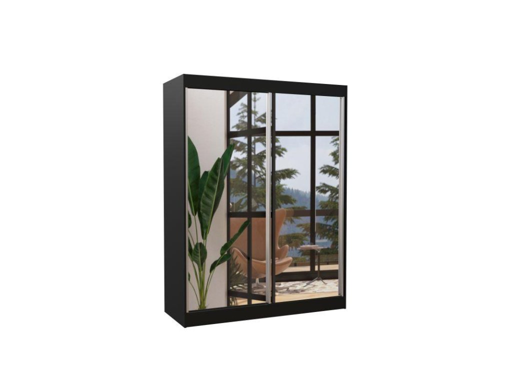 Posuvná skříň se zrcadlem FLOREST - Černá - šířka 150cm