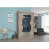 Velkou výhodou skříně Oswald jsou její posuvné dveře. Díky nim odpadá potřeba vyhrazení dalšího prostoru pro běžné křídlové dveře, které se musí otevírat do místnosti. To z této skříně činí ideální řešení do malých bytů, ložnic, chodeb nebo předsíní, kde je omezený prostor k dispozici. Posuvný mechanismus funguje na principu tichých a odolných kolejniček v horní části. Šířka dveří dosahuje 125 cm, takže pohodlně využijete celý vnitřní prostor pro snadné ukládání i vybírání věcí. Dveře se současně mírně zrcadlí, takže celkově přispívají k světlému a otevřenému charakteru skříně.