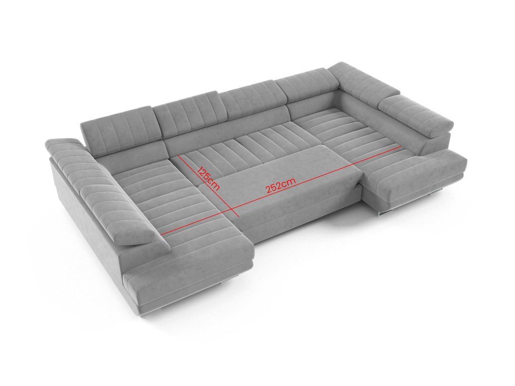 Sedačka disponuje rozkládací funkcí typu Delfin, díky které ji snadno proměníte na lůžko o velikosti 252 × 125 cm. Praktické úložné prostory poslouží například pro uložení lůžkovin. Komfort při odpočinku zvyšují také polohovatelné opěrky hlavy, které si můžete přizpůsobit dle potřeby.
