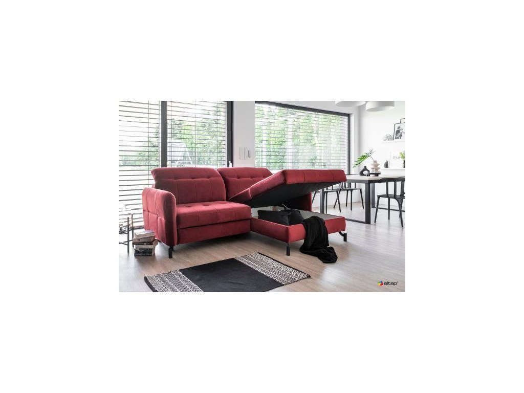 - Disponuje úložným prostorem v otomanu